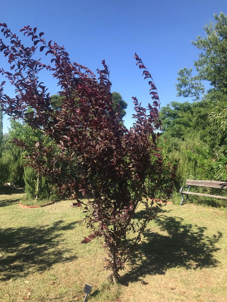 Dieser rotblättrige Busch ist eigentlich eine Zierpflanze und erfreut schon im Spätwinter mit wunderschönen weißen Blüten. Daraus wachsen dunkelrote Pflaumen, die essbar sind. Nicht nur für die Vögel. Letzte Woche habe ich fast ein Kilo davon geerntet und ebenfalls zu Marmelade verarbeitet.