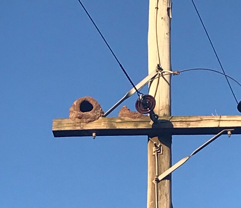 Horneros sind meist als Paar unterwegs, seltener in kleinen Gruppen von vier bis sechs Tieren. Sie bauen ihre Nester in Bäume, aber auch auf Strommasten und Zaunpfosten.