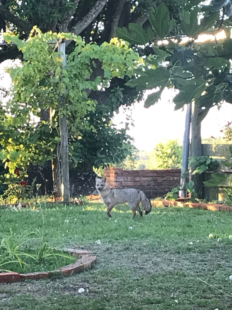Um welche Art von Fuchs es sich handelt, kann ich nicht sagen. Laut Internet gibt es verschiedene in Uruguay, wir haben beim Autofahren auch schon einige anders aussehende gesehen. Unser Exemplar hier passt allerdings zu keinem der Fotos im Netz. Entweder stimmt die Fellfarbe nicht oder die Beinhöhe oder die Gesichtsform. Aber aufgrund des Schwanzes würde ich ihn eindeutig als Fuchs identifizieren.