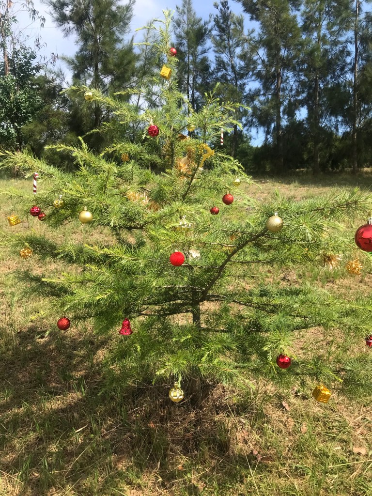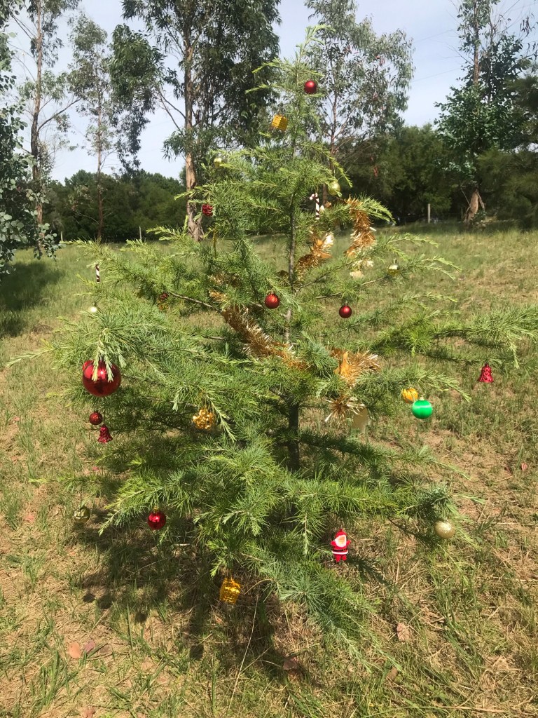 Unser diesjähriger Weihnachtsbaum ist eine Zeder, die draußen auf der Weide steht