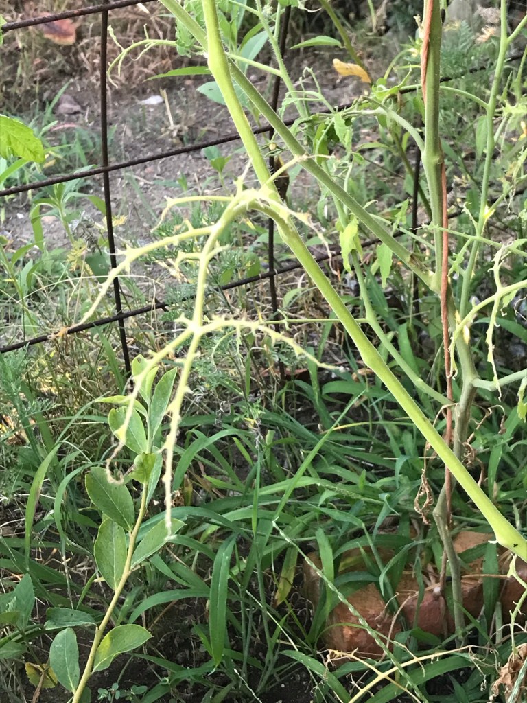 Das Unkraut drumherum lassen sie natürlich stehen und die nackten Tomatenpflanzen stehen inmitten von üppigem Grün!
