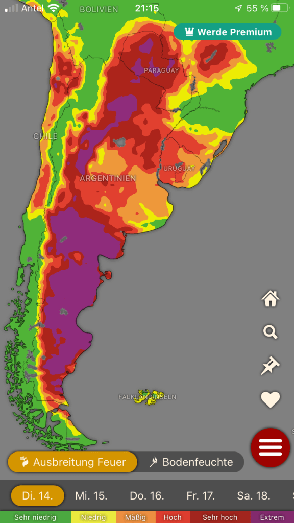 Die Feuergefahr südlich von Paraguay bis hinunter nach Patagonien steigt mit jedem Tag.