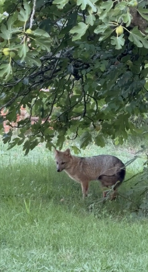 Dass wir nur wenige Meter entfernt um den Grill herum sitzen, stört ihn nicht. Er hält etwas Abstand, vier sich unterhaltende Menschen sind dann doch etwas Vorsicht wert, aber die Lust auf Feigen ist größer als die Angst!