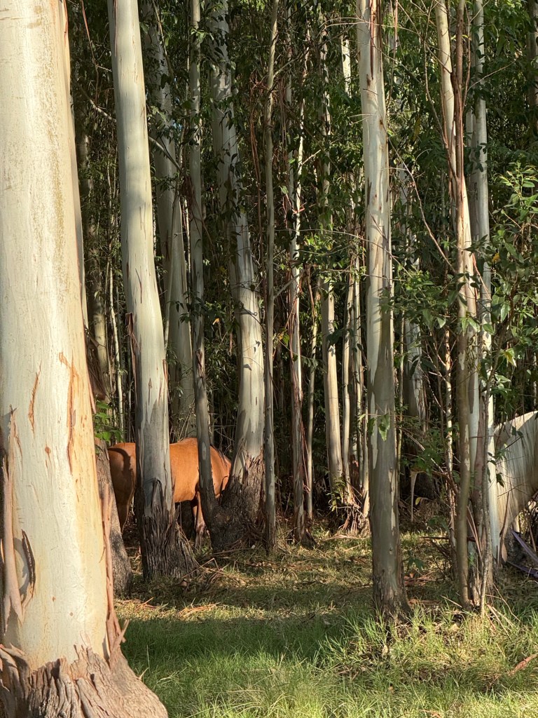 Das grüne Gras zwischen den Bäumen wird gerne gefuttert.
