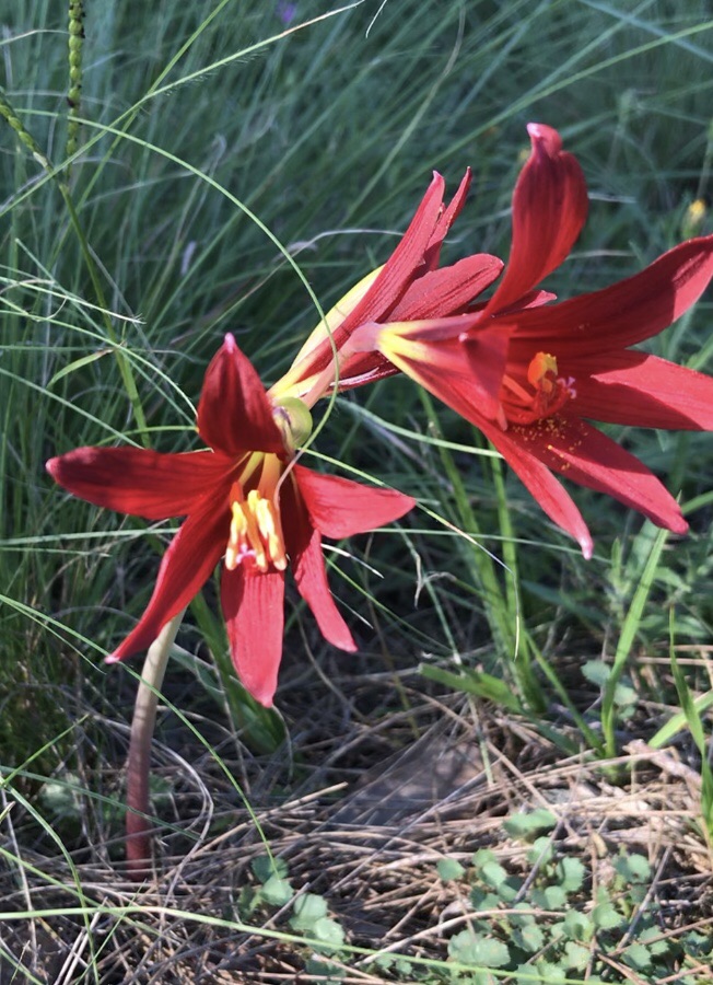 Wilde Amaryllis blühen auf den mageren, steinigen Hängen.