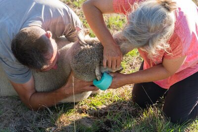 Jedenfalls hat er sich durch die scharfen Kanten an den Hornstummeln an den Ohren verletzt und blutete. Das musste versorgt werden.