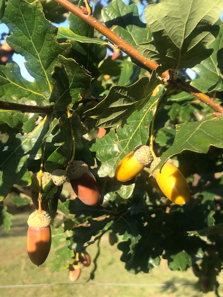 Unsere Bäume haben in diesem Jahr extrem viele Eicheln, die nun langsam reif werden.