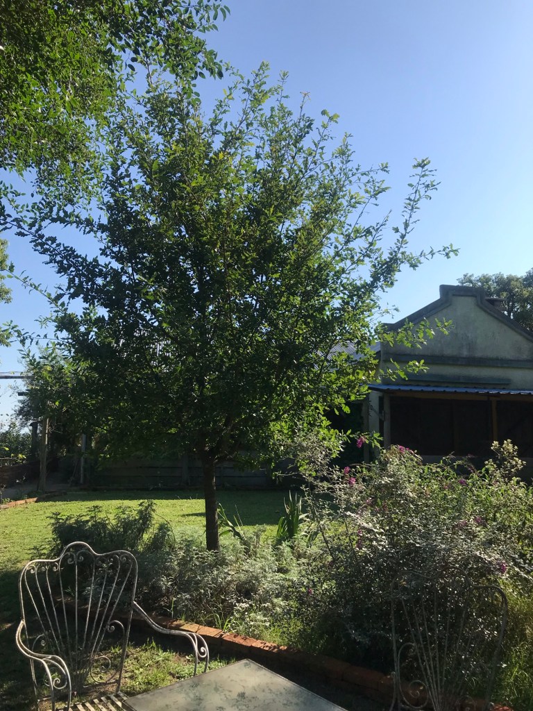 Die Eiche ist mein absoluter Lieblingsbaum und deshalb musste natürlich im Park auch ein Exemplar gepflanzt werden. Ob sie im hiesigen Klima gedeihen, wussten wir damals noch nicht, konnten aber ein Bäumchen in einer Gärtnerei kaufen.