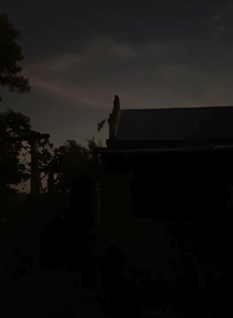 Im Dach wohnen hunderte Fledermäuse. Abends in der Dämmerung kommen sie heraus und fliegen zur Jagd.