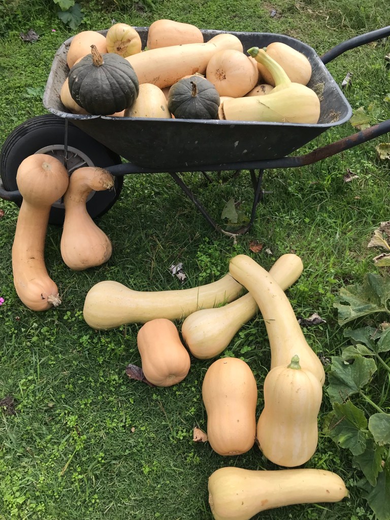 Bevor die ersten frostigen Nächte übers Land ziehen, wurde es Zeit, die Kürbisse zu ernten. Nach anfänglichen Wachstumsschwierigkeiten zu Beginn des Sommers haben sie sich hervorragend entwickelt. So eine riesige Ernte hatten wir noch nie!