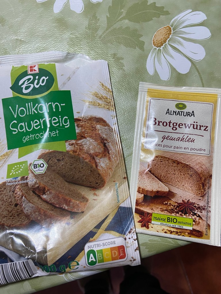 Hauptzutat ist ein Bäckermehl in hervorragender Qualität, das ich praktischer Weise im 25 kg Sack habe. Dazu kommen verschiedene andere Mehle wie Vollkorn- oder Roggenmehl und natürlich Sonnenblumenkerne, Leinsamen, Mohn, Sesam und was ich halt gerade so da habe. Da kann ich meiner Fantasie freien Lauf lassen. Ich backe grundsätzlich immer ohne Rezept.
