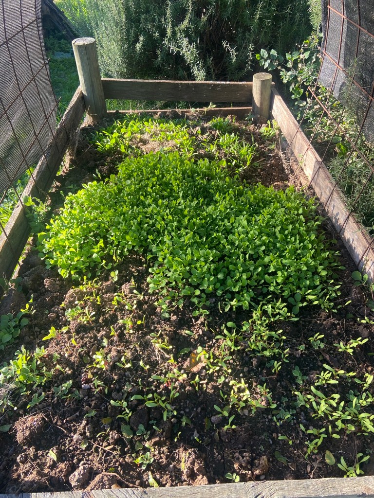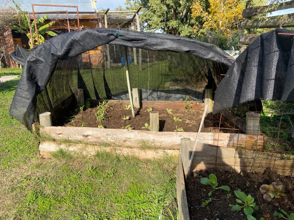 Ein drittes Hochbeet habe ich vorgestern mit vorgezogenen Pflanzen aus der Gärtnerei bestückt. So haben wir den ganzen Winter über frischen Salat und Gemüse.