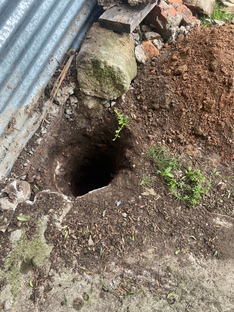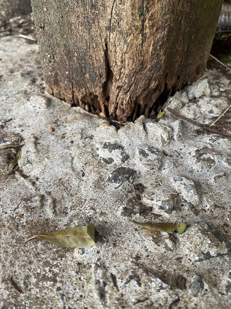 Eine schlampige Vorgehensweise rächt sich immer! Hier hat sich der Beton mit samt dem Holzpfosten aus der Erde gelöst.