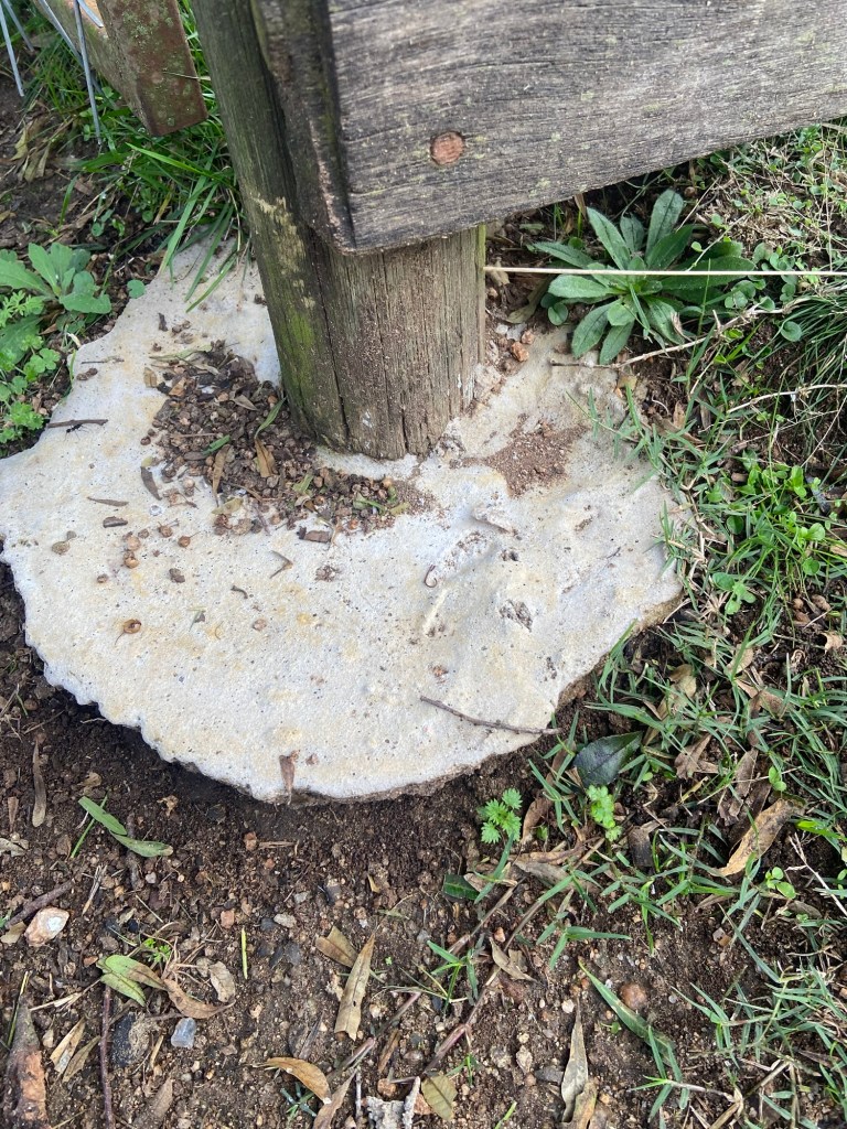 Nach und nach müssen immer wieder Pfosten ausgetauscht werden. Nach 6-8 Jahren werden die meisten in der Erde morsch, obwohl das Holz bearbeit ist und eine lange Lebensdauer haben soll. Auch die, die in einen festen Betonkern stecken, sind vom Verfall nicht geschützt.