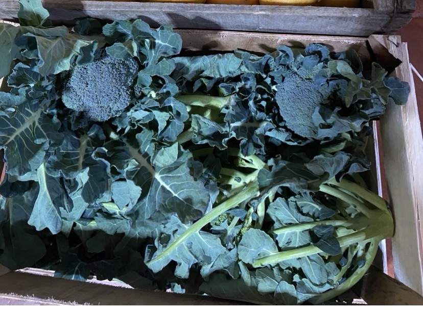 Wir bekamen eine Kiste tagesfrischen Broccoli aus dem Großmarkt. Die Regelung, die sich jetzt mit der Zeit ergeben hat, ist sehr praktisch. Unser Gemüsehändler fährt 2 Mal die Woche nach Montevideo in den Großmarkt und sendet uns per WhatsApp günstige Angebote. So können wir ganz spontan entscheiden: ja, das nehmen wir. Dann brauchen wir nur noch nach Tarariras fahren und das erntefrische Gemüse abholen. Natürlich im Großgebinde, aber das macht ja nichts.