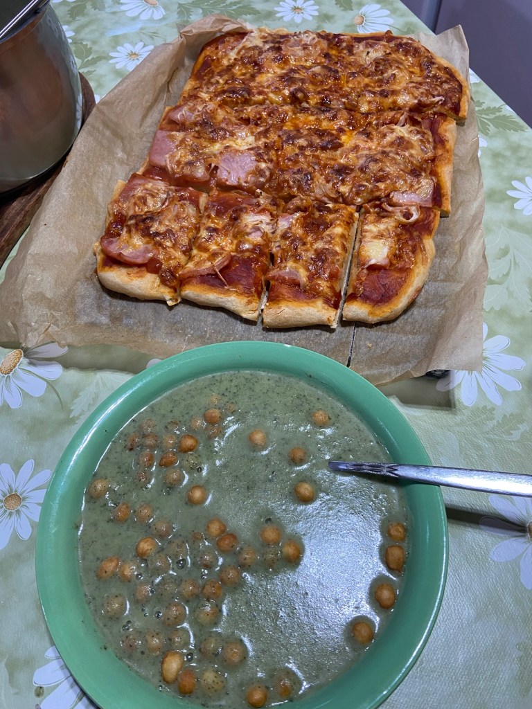Eine leckere Suppe lässt sich daraus schnell und einfach machen. Mit Backerbsen und Pizza ein gutes Mittagessen.
