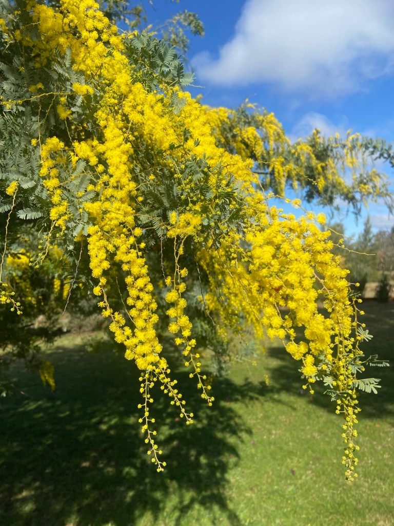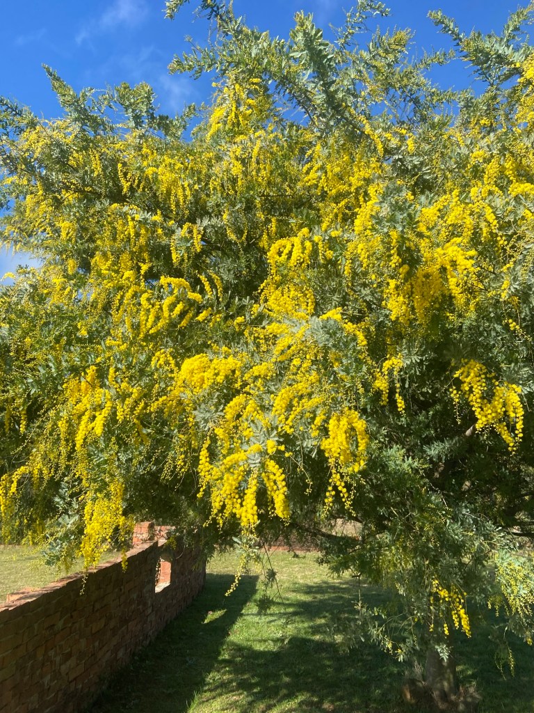 Die olivgrünen Blätter bilden einen schönen Kontrast zum leuchtenden Gelb der Blüten.