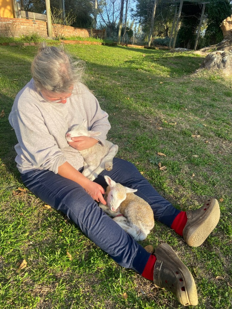 Das obige Foto ist aus dem Archiv. Wir beherbergten schon bis zu 11 Lämmer im Haus. Das ist immer ein ziemliches Gewusel, bis alle ihre Windel anhaben und gefüttert sind. Tagsüber sind sie draußen in einem „Kindergehege“ in das sie, wenn der jüngste zwei Wochen alt ist, komplett umziehen. Da die Nächte teils bitterkalt sind und die Kleinen keine Mama zum Kuscheln haben, sind sie im Haus besser aufgehoben.