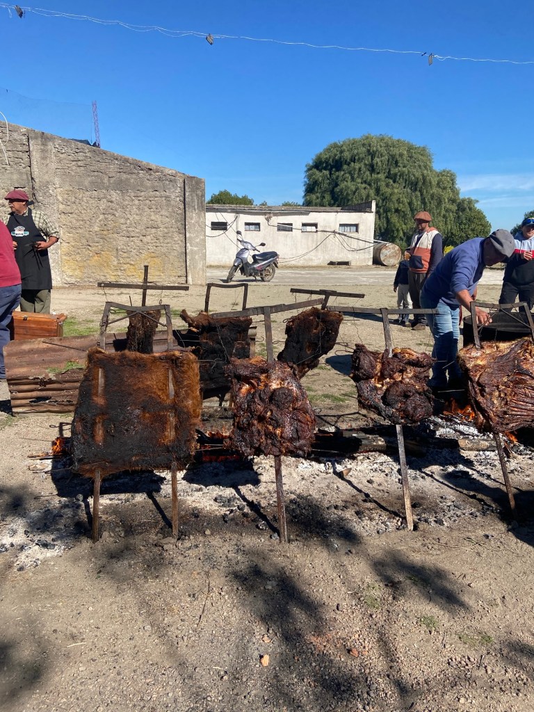 Am Sonntag war es wieder soweit. Ein Asado stand an, man brauchte Geld für die Instandhaltung der Sport- und Freizeitanlage. Traditionell wurde Rindfleisch im Fell gegrillt. Das Fleisch zwischen Fettschicht und Fell bleibt schön saftig und bekommt seinen einmaligen Geschmack.