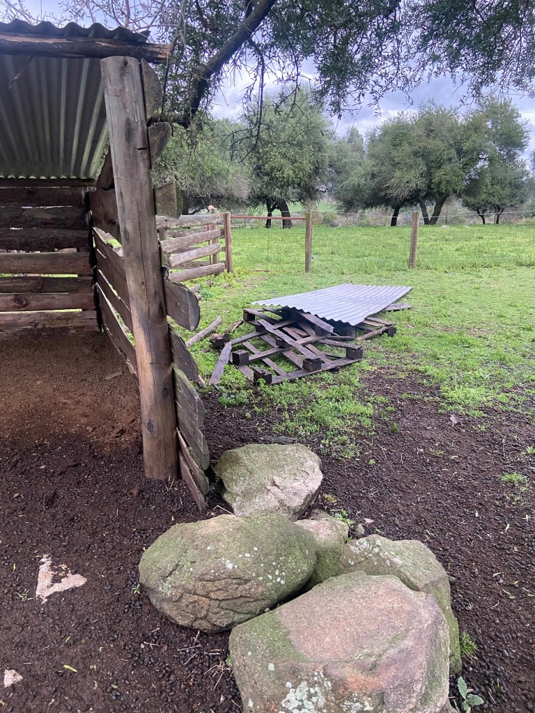 Das Dach einer Schafunterkunft hat den Naturgewalten nicht standgehalten.