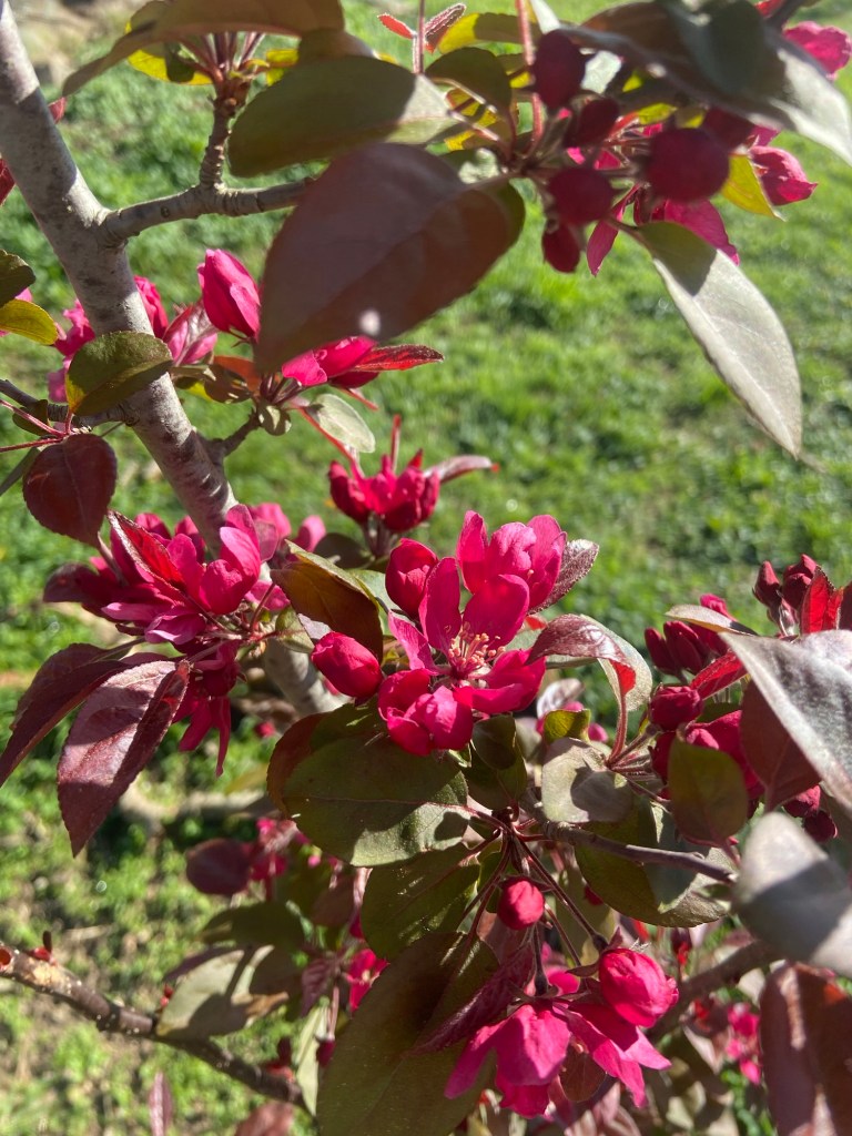 Eine wahre Augenweide ist unser chinesischer Zierapfel. Und nicht nur wir freuen uns über die farbintensiven Blüten. Sie haben einen hohen Nektar- und Pollenwert und locken vor allem die Wildbienen an, die vor einiger Zeit wieder in ihr Loch im Ombu-Baum eingezogen sind.
