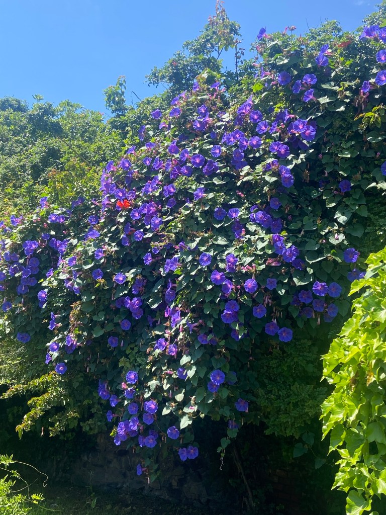 Hier ist sogar Unkraut, eine blaue Winde, eine leuchtende Schönheit.