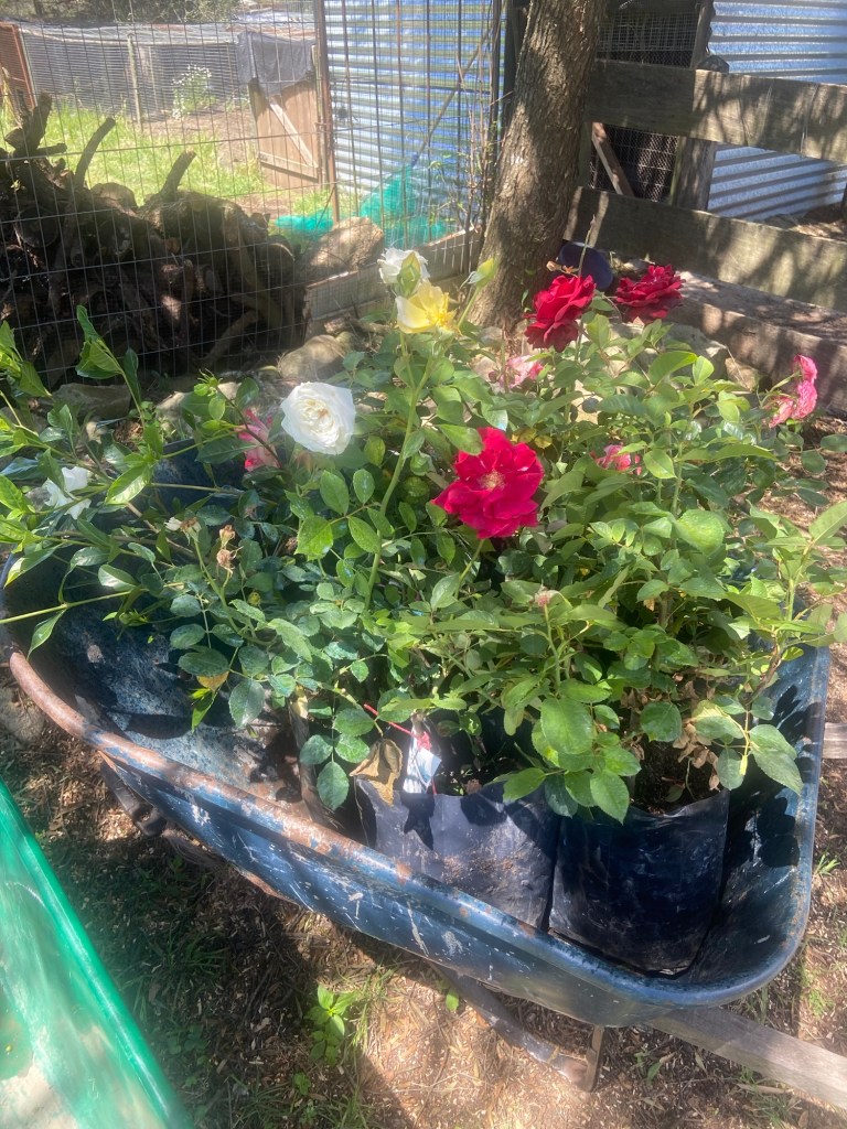 Zuhause angekommen, bekamen die Rosen eine Dusche mit Insektizid ( die Blüten wurden natürlich ausgespart ) , damit die Ameisen meinen Neuerwerb nicht gleich zum Frühstück vernaschen!