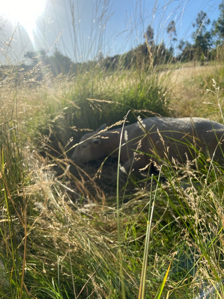 Die hohen Grasbüschel geben Schatten vor den intensiven Sonnenstrahlen und man muss immer ganz genau hinschauen, wo die Schafe versteckt sind.