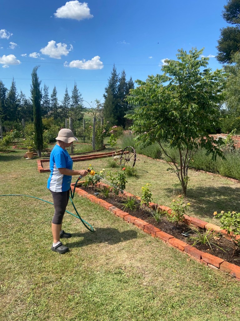 Wir stehen um 5 Uhr auf, da wird es gerade hell. Den Vormittag über werden Tiere und Pflanzen mit Wasser versorgt, 3000 Liter werden da täglich verbraucht.