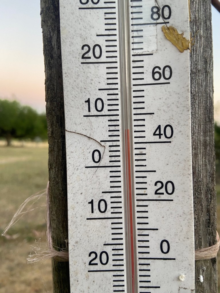 Laut Wetter-App sollten es heute Nacht 12 Grad gewesen sein. Alle Fenster waren geöffnet, um den warmen Mief aus der Wohnung zu vertreiben und das hat auch ganz gut geklappt. Nur als wir heute Morgen um 5.30 h das Haus verließen, um die Tiere zu versorgen, kam es mir so gar nicht wie 12 Grad vor. Ich bin eh‘ eine ziemliche Frostbeule und fange hier im Sommer schon ab 20 Grad an zu frieren! Also wagte ich einen Blick aufs Thermometer und traute meinen Augen nicht: 7 Grad! Kein Wunder, dass sich meine Arme mit einer leichten Gänsehaut überzogen. Ich habe noch schnell nach meiner Strickjacke gegriffen. Nur im T-Shirt war es mir dann doch zu kalt.