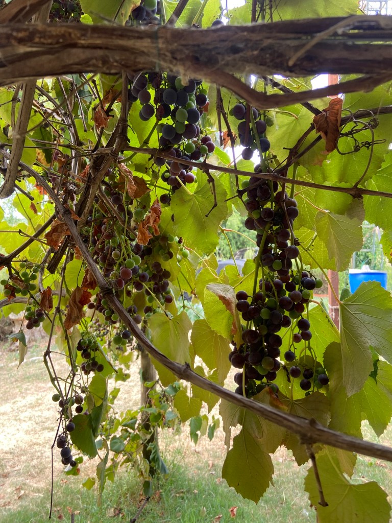 Nun lädt das Wetter momentan nicht gerade zur Mehrarbeit ein. Eigentlich reicht die Energie gerade für das Nötigste: Gießen, stundenlang Gießen!!!!! Dann ab auf den Sofa, Beine hochlegen und sonst nix mehr! 37Grad lähmen Geist und Körper! Ab den Mittagsstunden ist jeder Schritt anstrengend. Aber es hilft nichts: zusammenreißen und weitermachen. Neben den Trauben werden nun auch noch die Pfirsiche reif. Die sind dann als nächstes dran. Auch Gurken und Zucchini wollen geerntet werden. Die gibt es zum Mittagessen, da ist Abwechslung garantiert.