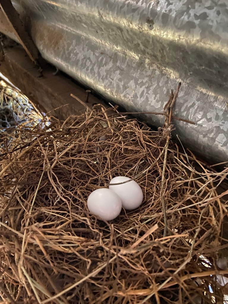 Mitte Januar entdeckte ich im Hühnerstall in einem Nest über dem Türstock 2 kleine weiße Eier.