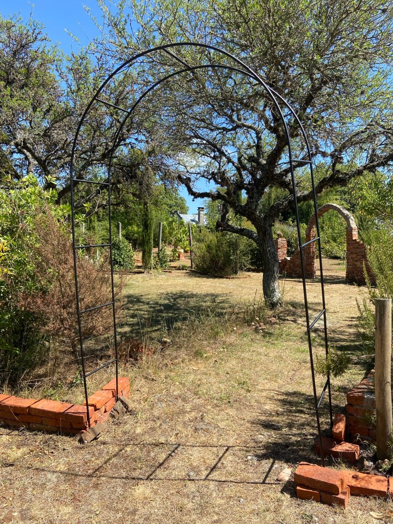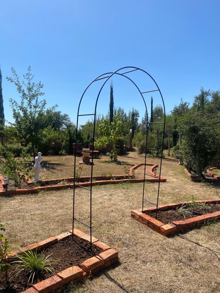 Der Bogen macht sich gut im neuen Rosengarten. Jetzt fehlt nur noch ein schöner grüner Rasen.