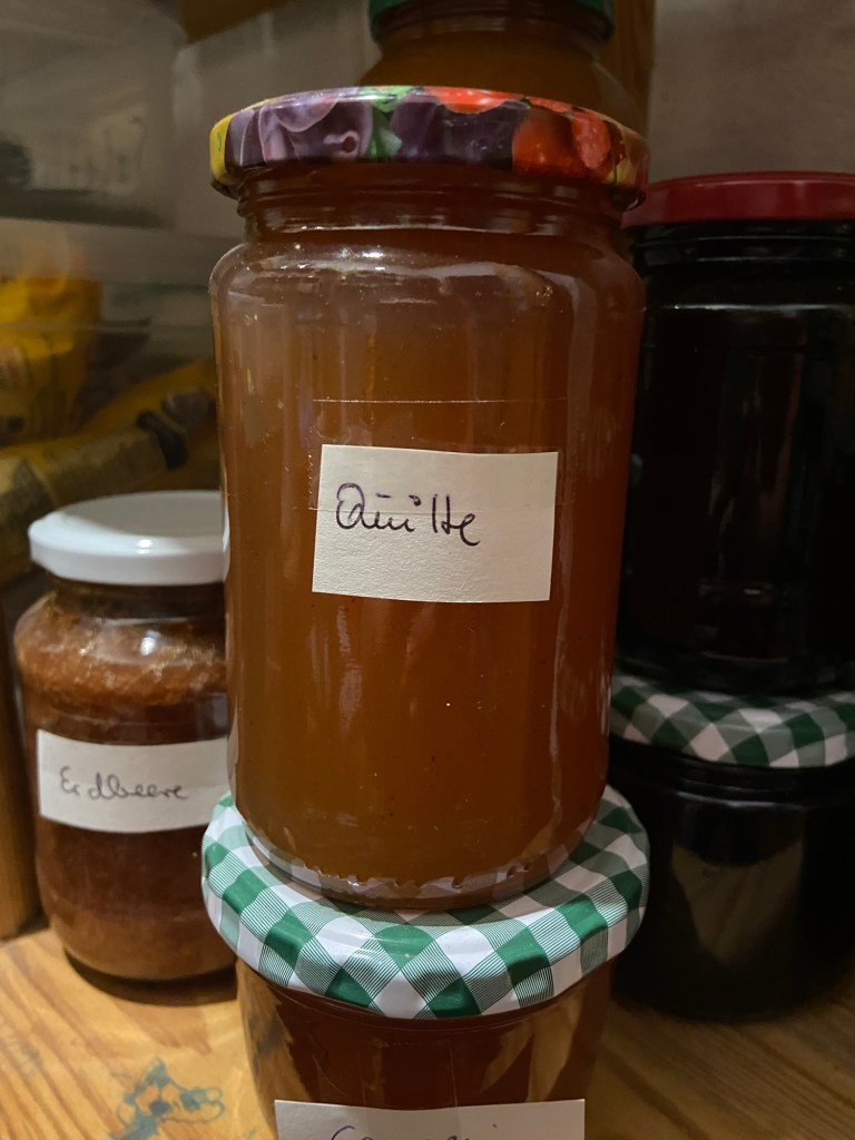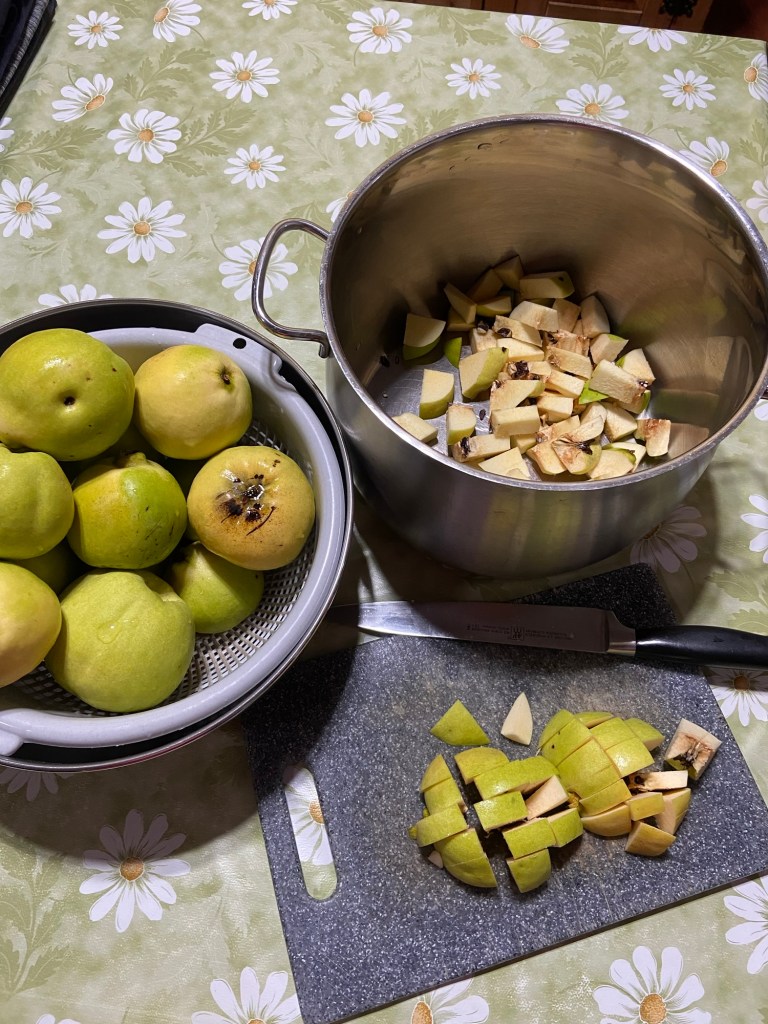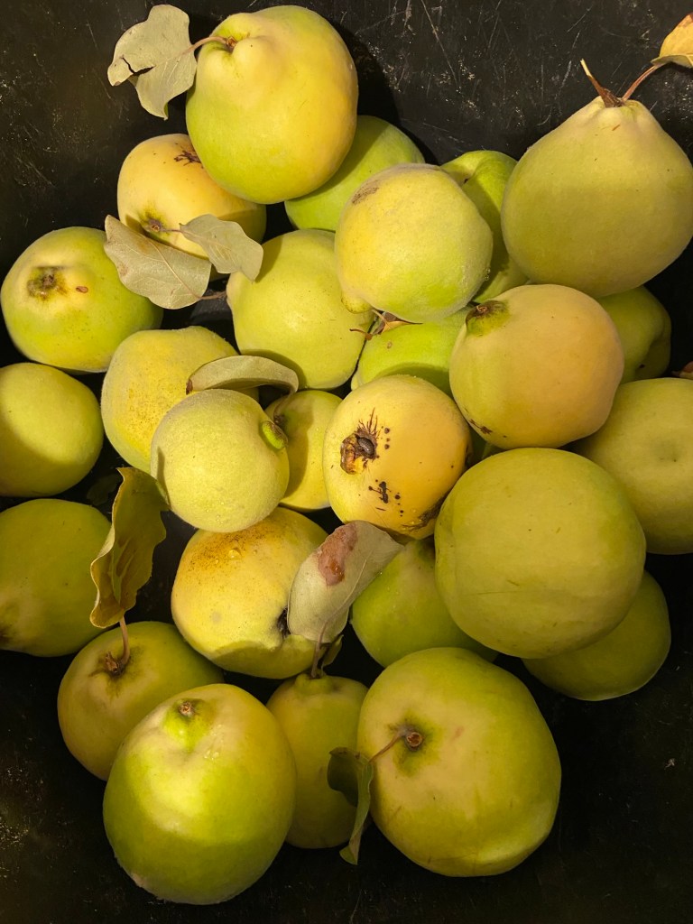 Also haben wir diese Woche die Quitten geerntet und verarbeitet.