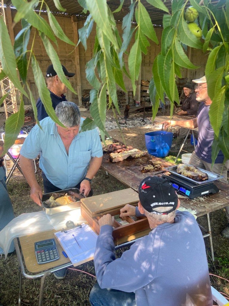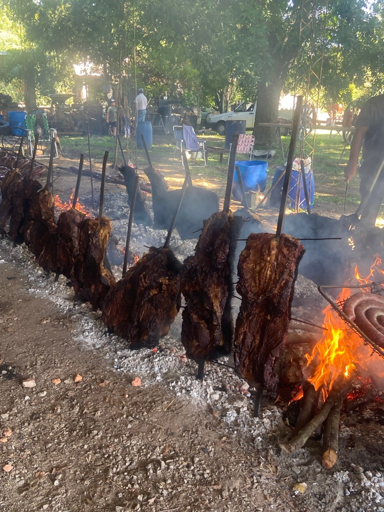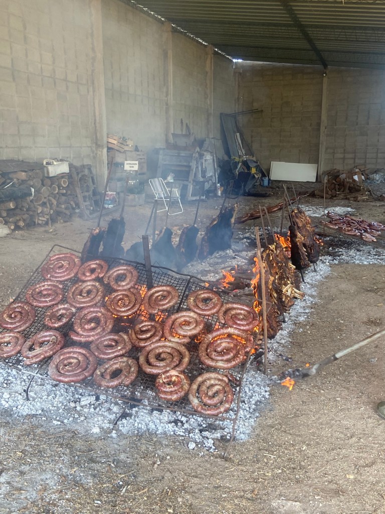 Natürlich gab es auch das obligatorische Asado mit Chorizo und Rindfleisch, das mit Fell über der glühenden Asche gegart wurde.